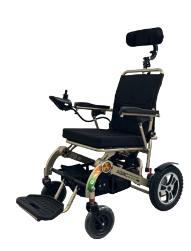 Menampilkan sandaran kaki yang dapat disesuaikan dengan rotasi 90 derajat, bantalan pedal busa poliuretan, roda depan padat PU 8 inci dan roda belakang padat PU 12 inci (keduanya dengan hub paduan aluminium), pengontrol penahan kemiringan cerdas, motor rem yang dikontrol secara elektrik, dan roda anti-tip.